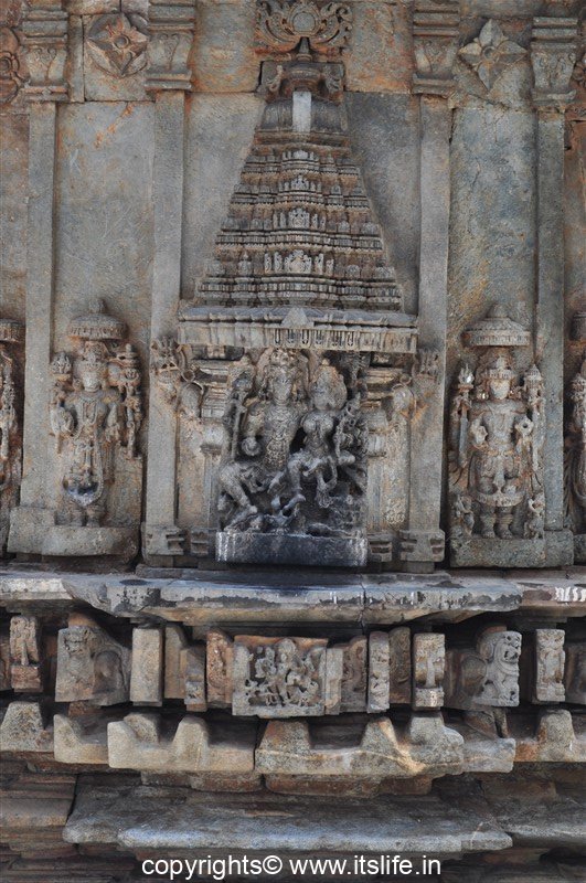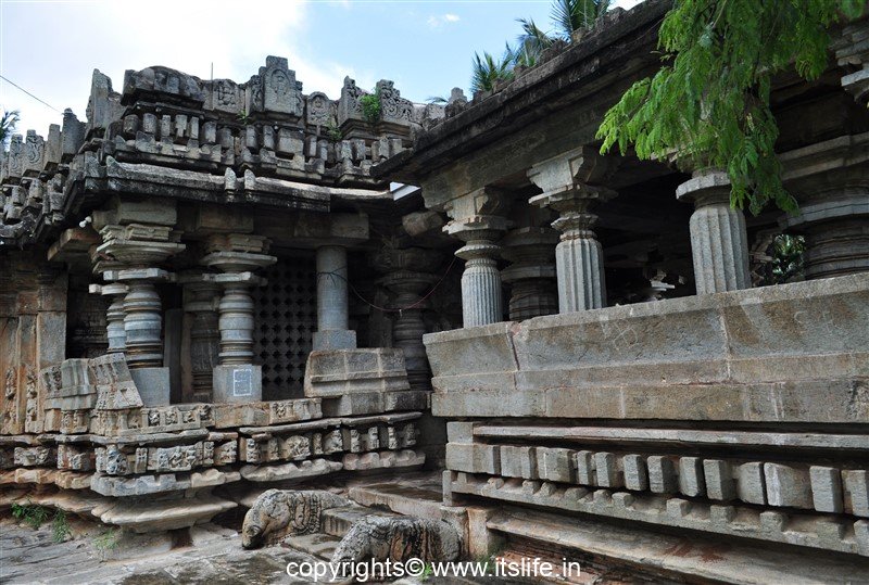 Most of the Hoysala temples are built on a platform whereas, this temple is built directly on the ground.