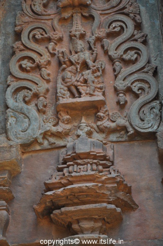 The temple has four doors in four directions. Two Lingas are installed in the sanctum and opposite to each of these two Nandi statues are installed.