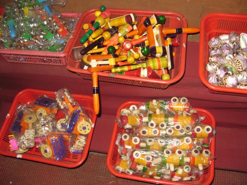 The same wood used to carve out the toys are used to make door curtains, key bunches, jewelry, and powder boxes. The napkin holder is very popular among foreign tourists. The toys and articles are made using Aale Mara (Wrightia tinctoria) tree. In recent days due to the shortage of Aale Mara, Lantana wood is used by the artisans.