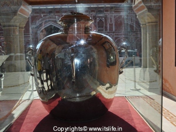 The private audience hall of the Maharajas is known as Diwan-I-Khas. The highlight of this hall is the display of the two huge sterling silver vessels, custom made to carry water from India to England for the Maharaja Sawi Madho Sing II in 1901. The Maharajah was visiting England for the coronation of King Edward VII.