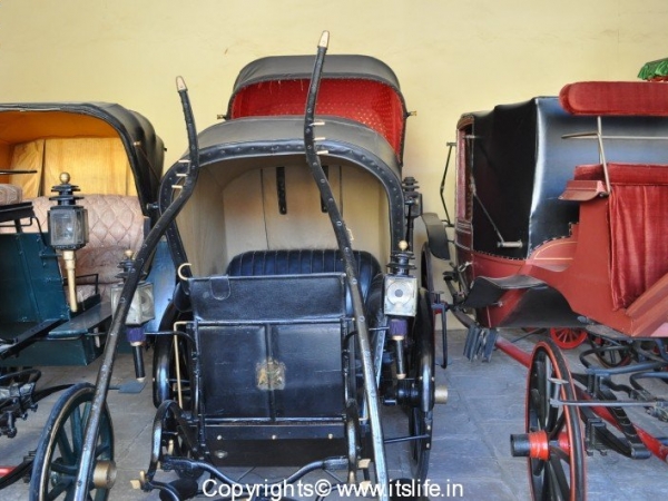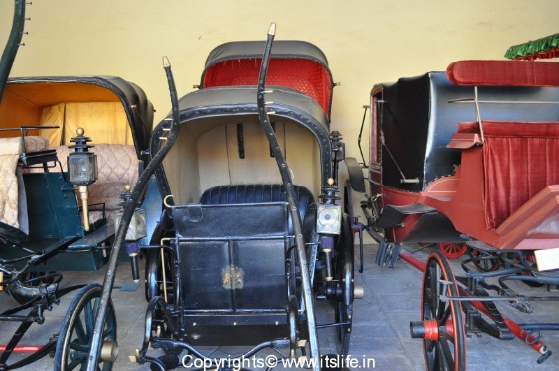 In this hall, old carriages, palanquins and European cabs adopted as baggis to Indian situations are on display here. The highlight here is a Buggy/baggi, which was gifted by Prince of Wales to the Maharaja in 1876, called the Victoria baggi. Also on display are chariots used to carry Hindu Gods and Goddesses during festivals like Gangaur and Theej. The mahadol, a palanquin with a single bamboo bar is displayed that was used to carry the priests.