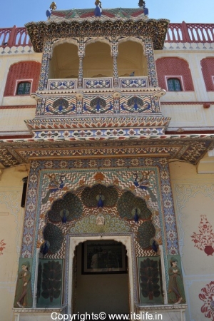 Maharani’s Palace as the name suggests was the residence of the queens. Now, it is converted into a museum, where weapons are displayed. The ceiling has Italian fescoes layered with a dust of semi precious stones. The highlight there is the sword presented by Queen Victoria to Maharaja Sawai Ram Singh (1835–80) which is inlaid with rubies and emeralds.