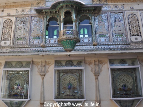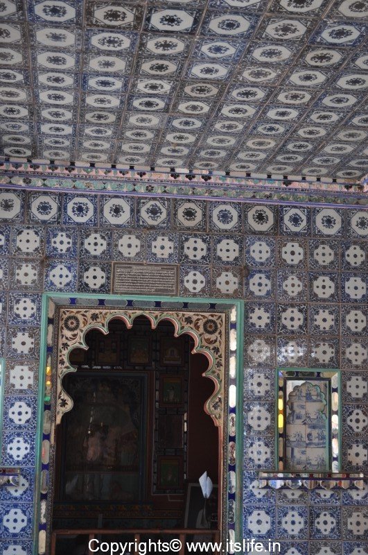 Manak Mahal (Ruby Palace) is decorated with glass and mirror work.