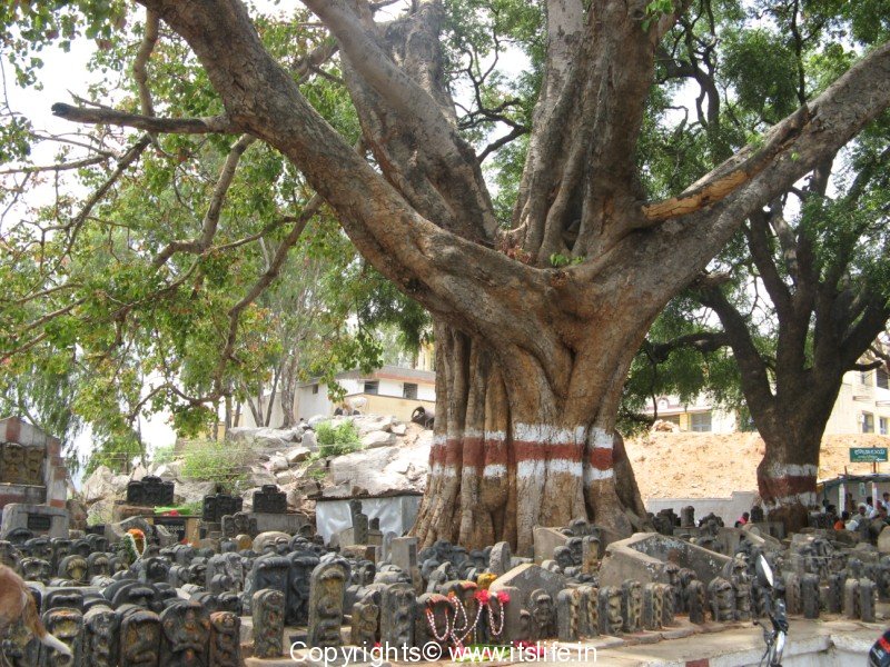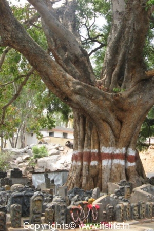 Under a huge Pepal tree many Nagappa / Snake carved on stone are installed known as Nagara Prathishte by devotees asking for favors.