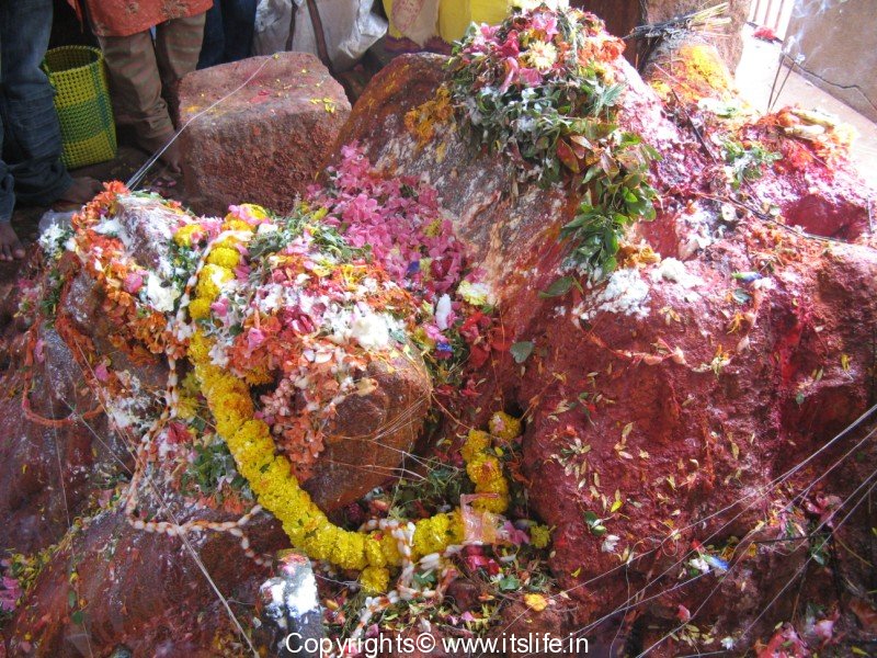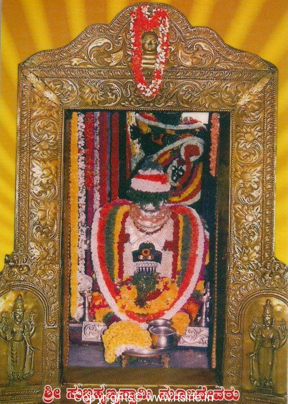 There is a huge rock on which Lord Subramanya idol has self originated here and behind the rock is the idol of Sri Lakshmi Narasimha, which is again self originated. There is a huge mirror placed behind the rock to see Lord Narasimha. The idol is decorated in a silver covering of a multi hooded snake.