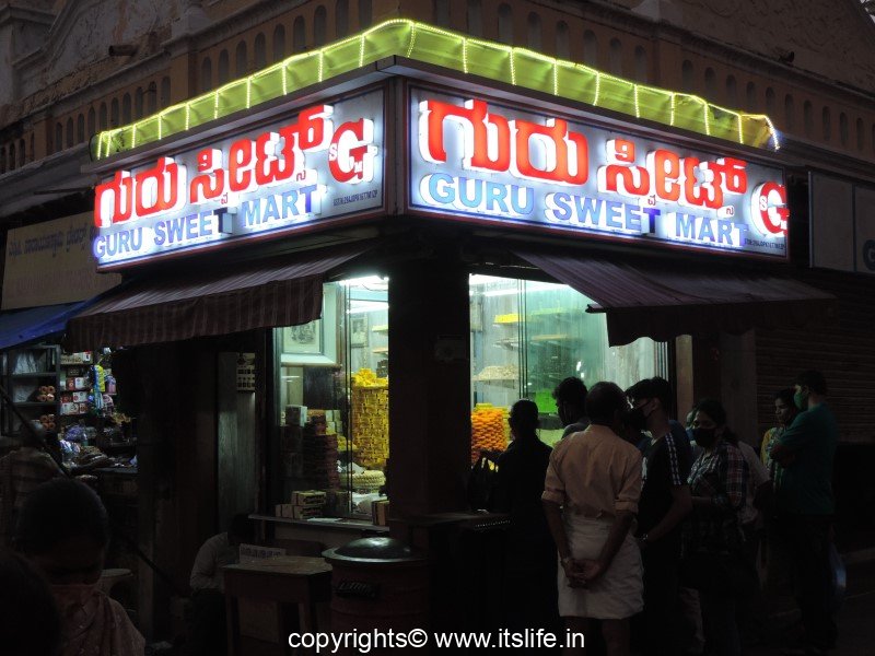 To this day, if you ask any Mysoorean where they can get the best Mysore Pak, every one of them will point to Guru Sweet Mart. Always crowded, you have to wait patiently for your turn to get some Mysore Pak. But, once you get it and bite into it, the taste and the “melt in the mouth” experience will make you want more.