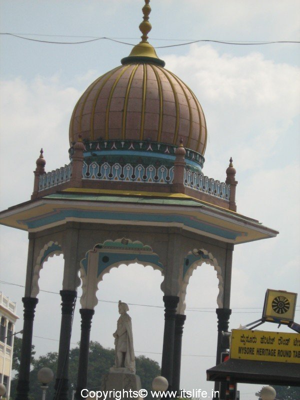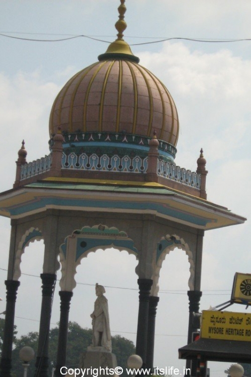 Krishnaraja Circle/K.R.Circle and Chamaraja Circle with the majestic statues of Krishananraja Wodeyar and Chamaraja Wodeyar, the architects of modern Mysore adds glory to the city.