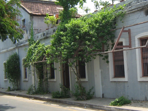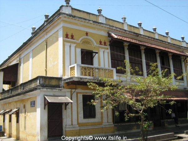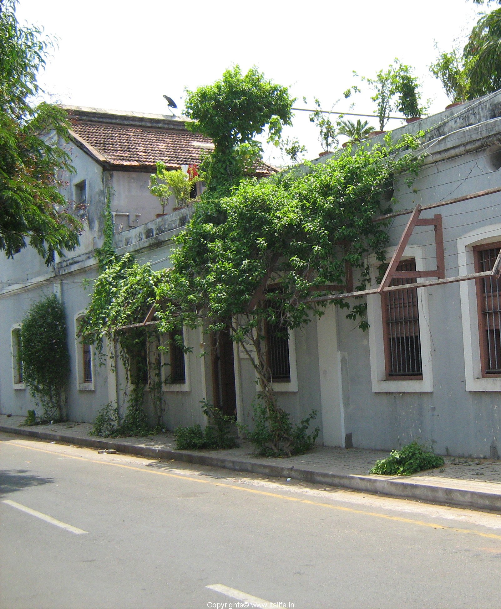 The French quarter was built near the sea face on sand. The streets are extensive and well laid out with huge buildings surrounded by high walls lining the streets. Elaborate gates open to path leading to the mansions. The other residential buildings are simple and have flat roofs, with an inner courtyard, high ceilings and colonnaded porticos. The stairs leading to the first floor and terrace are striking built with wood or iron.
