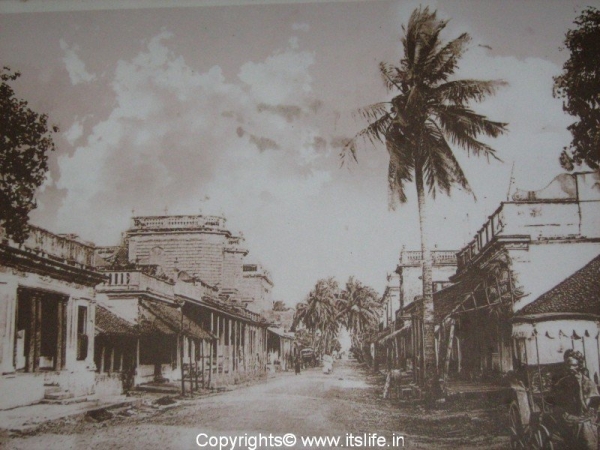 Tamil quarter comprises of many temples and residential buildings around it. The streets are laid out in east-west direction. The houses are built back-to-back and are in continuous rows. The entrance of the house has portico with low platform and wooden or concrete pillars. This is known as “thinnai” in Tamil. These houses with the typical Tamil architecture have lean-to-roofs (roof with only one slope), ledges, pilasters, a pilaster is a slightly-projecting column built into a wall for ornamental purposes and engaged columns and ornamental parapets.