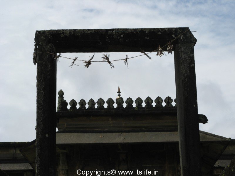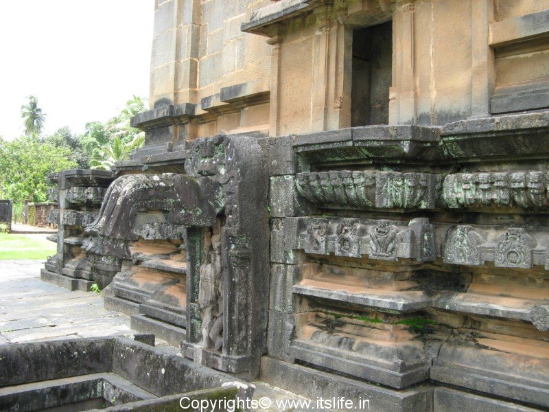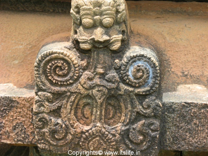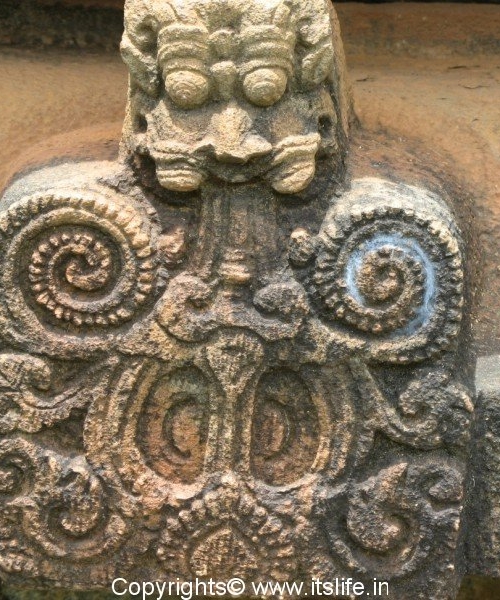 The only reminder of the bygone era is a temple dedicated to Aghoreshvara / Lord Shiva. Aghoreswara is one of the several names of Lord Shiva. It means “the lord of 14th night of the darker half of Hindu month of Bhadrapada” in honor of a good deed performed by Lord Shiva towards the protection of the universe. The temple is built at a height and it is huge and beautiful. The sculptures on either side of the huge doorways and pink paint used all around the doorway of the temple is unique and striking. The temple is built using laterite material, which is abundantly found in this part of the region.