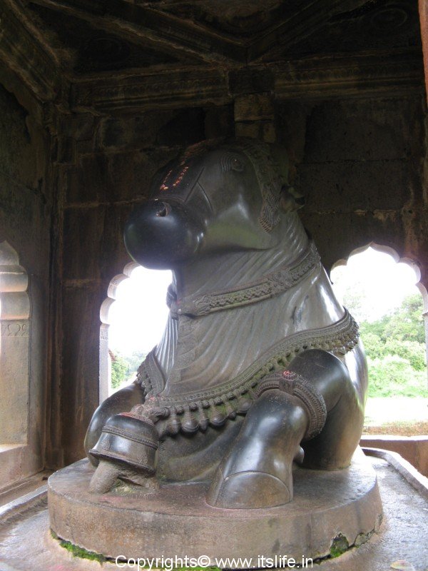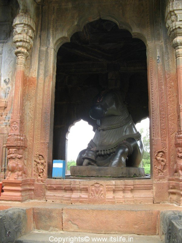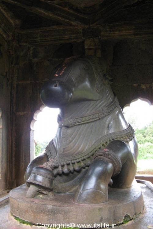 The huge stone Nandi / vehicle of Lord Shiva is housed opposite to the temple in open stone mantapa / porch is huge and polished like glass.