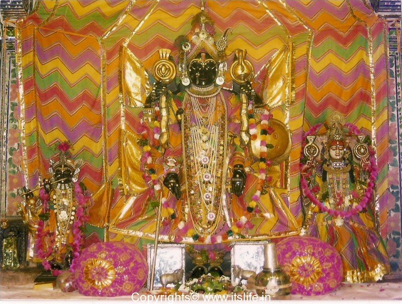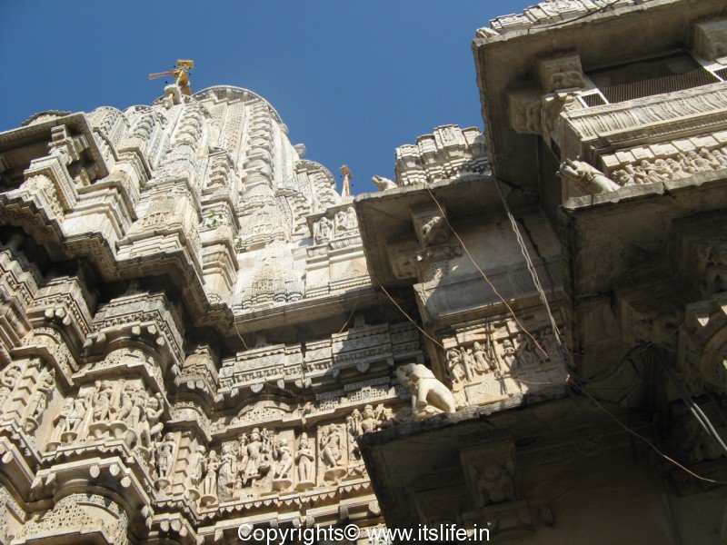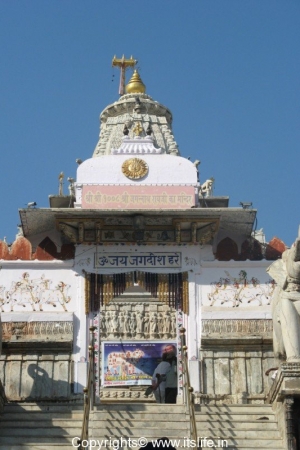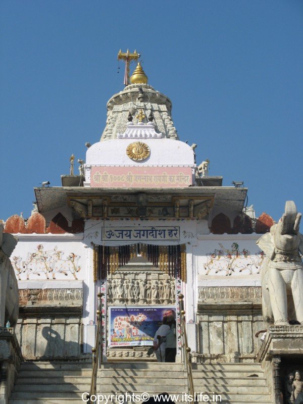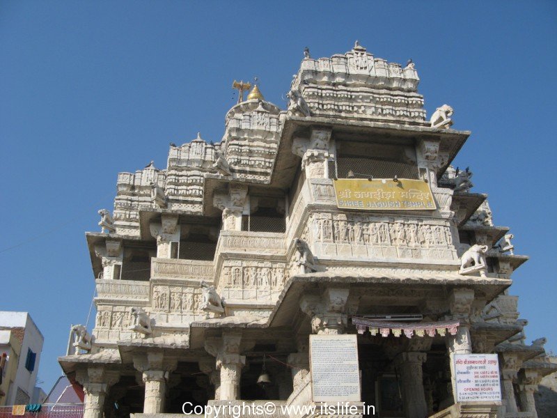 The temple was built by Maharana Jagat Singh (I) in 1662 AD in Nagara* style of architecture. It is layered into three parts the pith, mandover and shikar. It is one of the finest examples of Indo Aryan architecture. The outer walls of the temple are decorated with carvings. An inscription found here gives details about this temple and narrates about the Guhil rulers of Mewar. There are other shrines inside the temple dedicated to Surya, Durga, Devi, Shiva and Ganesh.