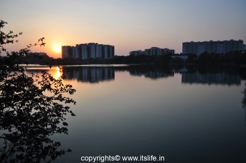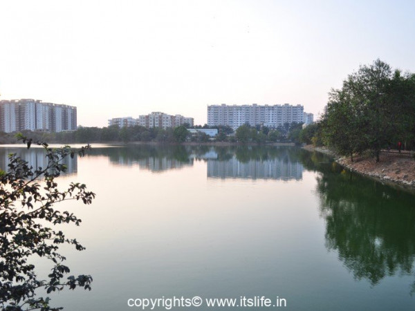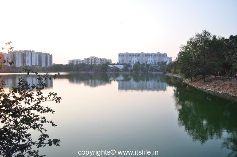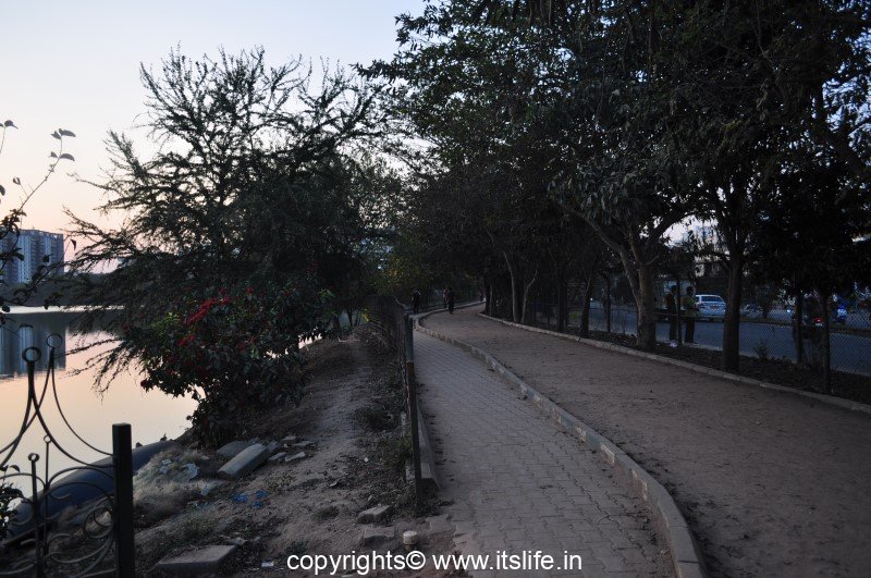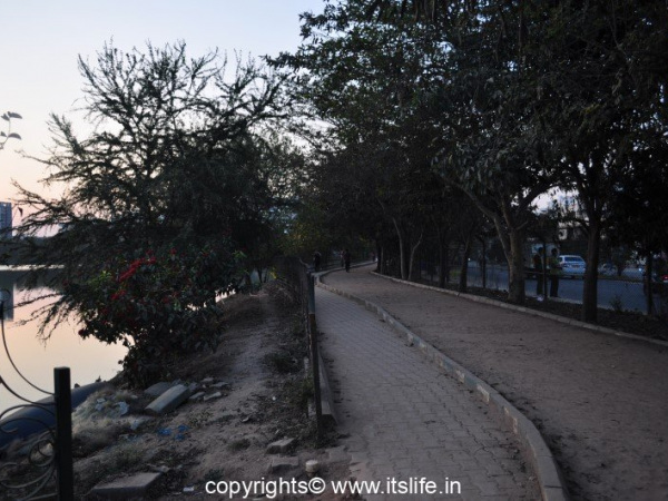 A well-laid walking path surrounds the lake. It is approximately 1.9 Km. There are many trees and shrubs growing on the lake bund.