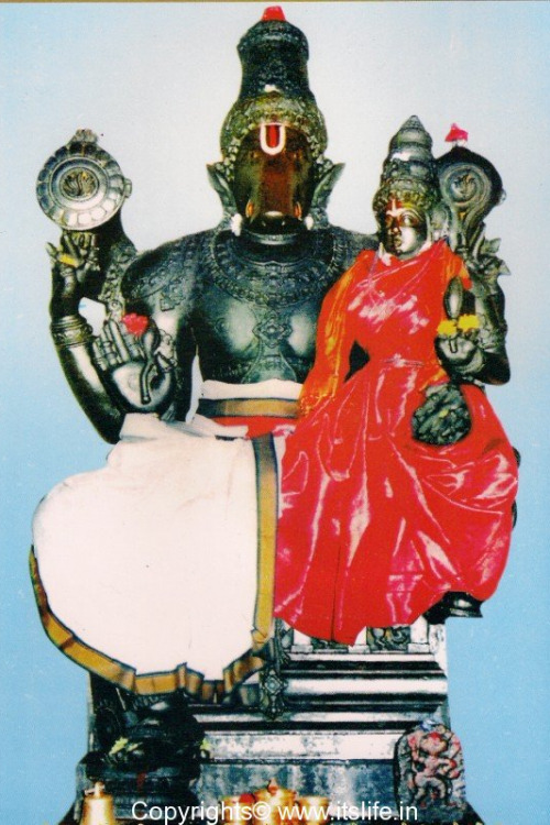 The presiding deity is Bhoo Varahaswamy, who is Lord Vishnu’s third avatar / incarnation and is also known as Pralaya Varaha Swami and Adi Varaha Mahishi. In this avatar Lord Vishnu appeared as a boar to rescue Goddess Bhoodevi / Mother Earth from the demon Hiranyaksha.