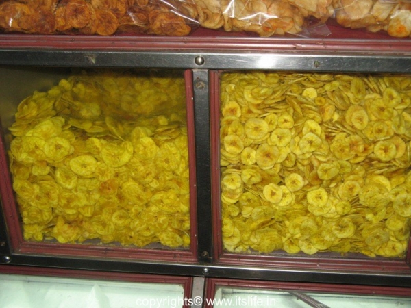 The main street has many interesting shops selling clothes, shoes, Kerala Banana, Vegetables, and Kerala Chips.