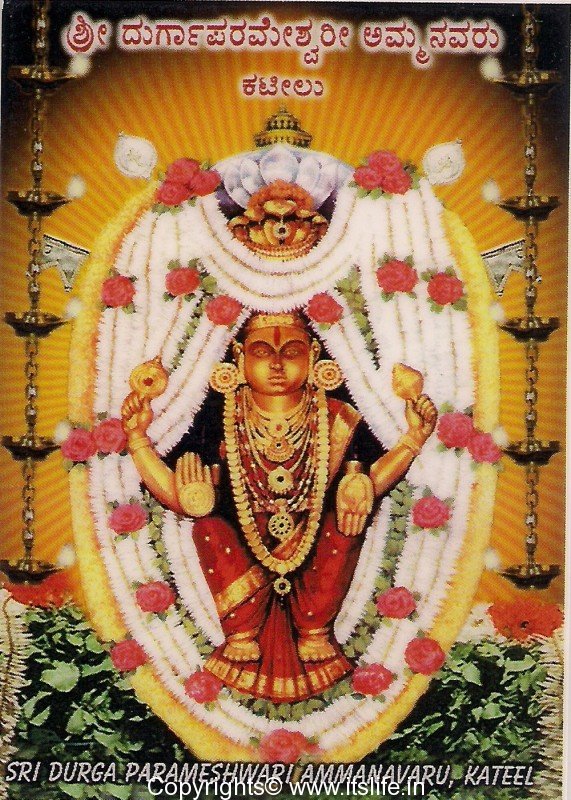 In Kateel on an island created by river Nandini is situated the Sri Durga Parameshwari temple. Kateel is located in Dakshina Kannada district, Karnataka.