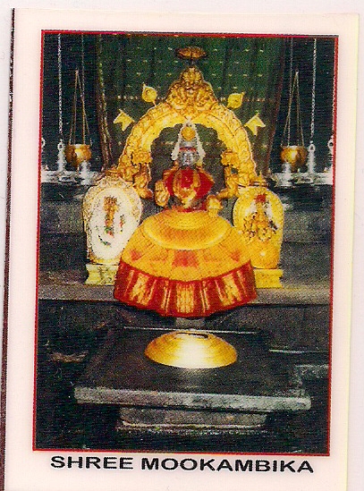 There is an idol of Devi Mookambika installed on Srichakra by Sri Adi Shankaracharya as she appeared before him after his meditation.
