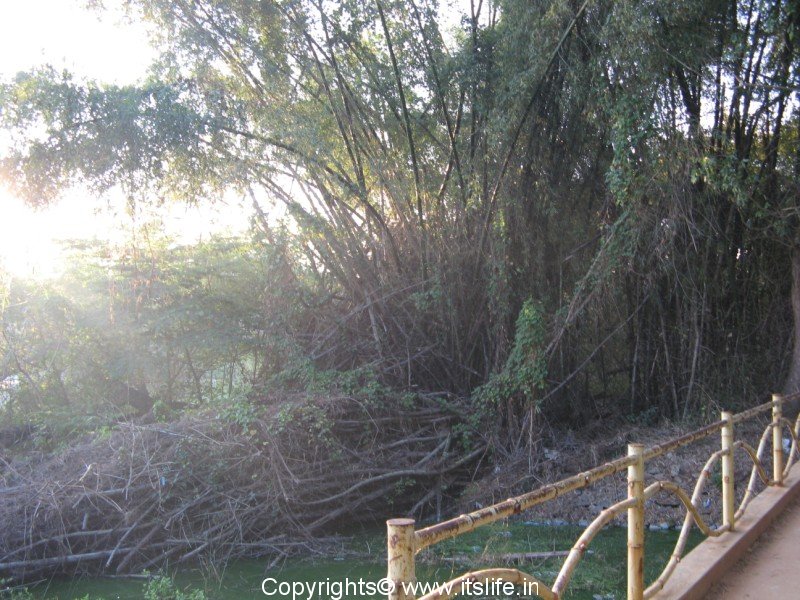 A well manicured garden is maintained at one end of the tank bund.