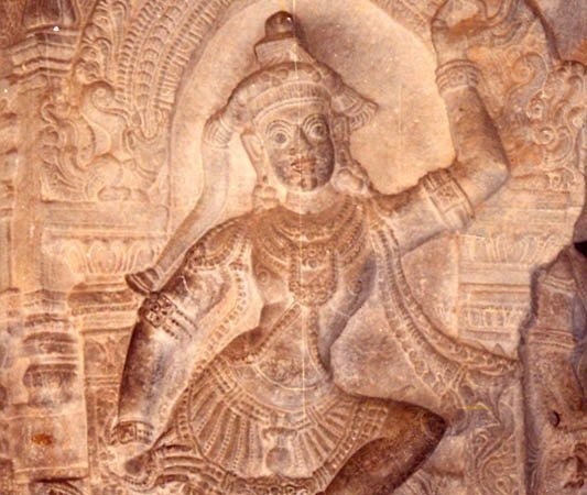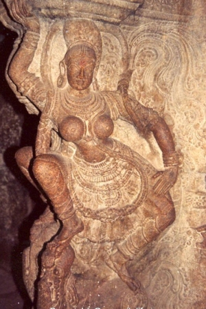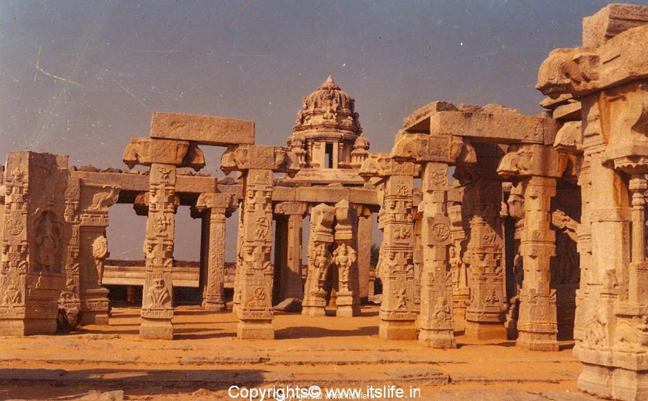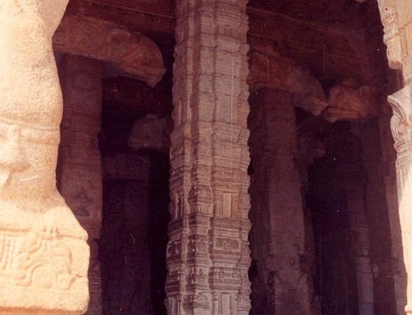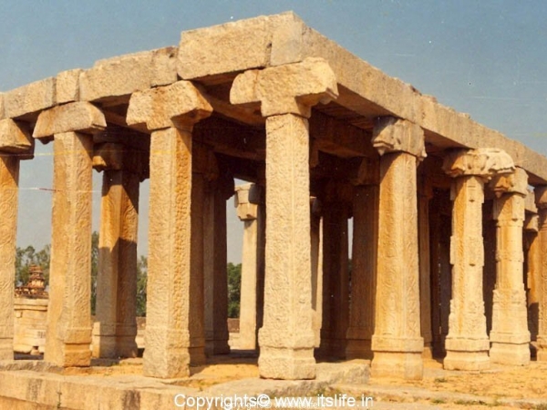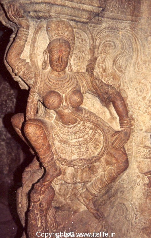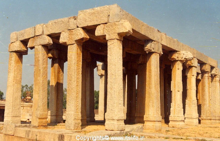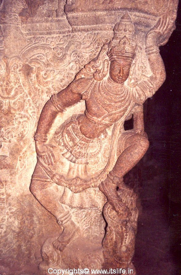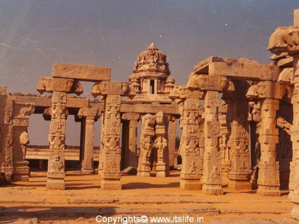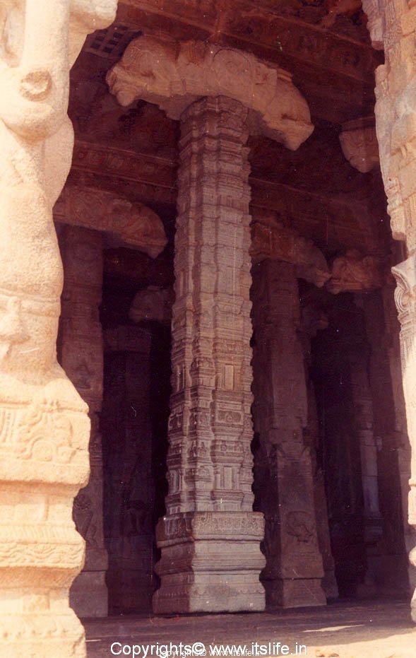 The designs on the pillars of the Latha Mantapa are that of different creepers and these designs are copied for the border of Saris / Indian costume. The Kalyana Mantapa was supposed to have been the venue of the wedding of Shiva and Parvathi.
