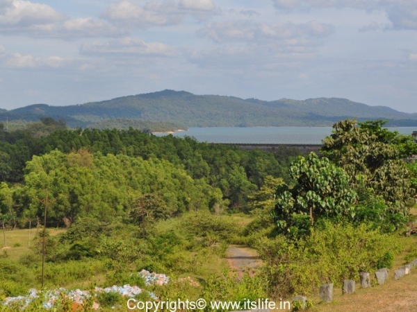 The Linganamakki dam is located in Kargal town, Sagara taluk and is built across Sharavathi River in 1964. The length of the dam is 2.4 km and height is 193 feet. The dam is situated at a height of 1819 feet above sea level. Linganamakki reservoir is spread over an area of 128.7 kms.