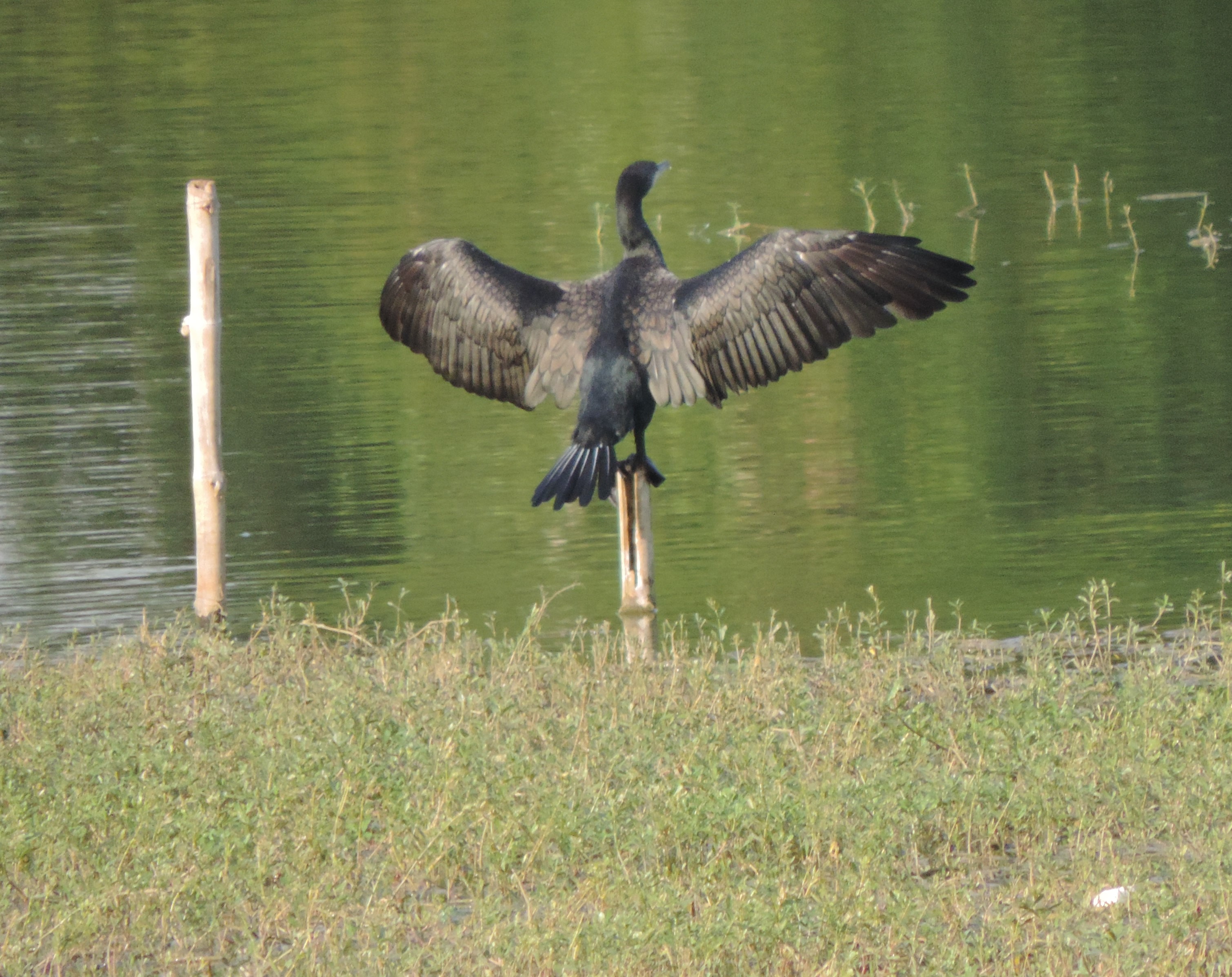 Tiny rocks near the Lake edges are positioned right for the Cormorant to dry its wings.