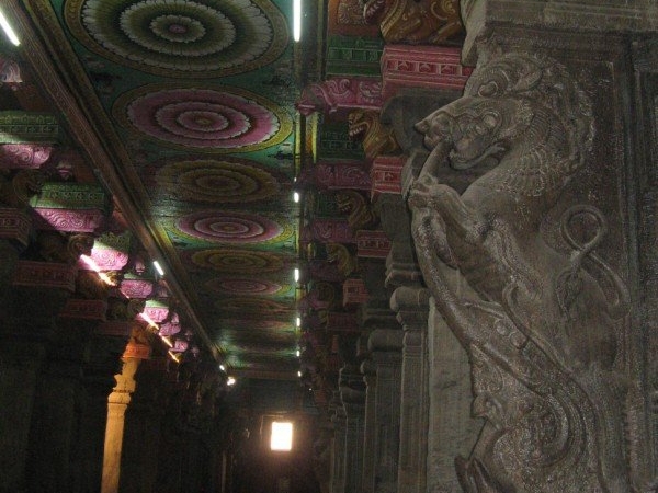 The Meenakshi Nayakkar Mandapam (hall of 1000 pillars) is a mesmerizing hall consisting of 985 carved pillars and is situated to the north of Sundareswarar hall. There are two rows of pillars carved with images of Yali (mythological beast with body of lion and head of an elephant), commonly used as the symbol of Nayak power.