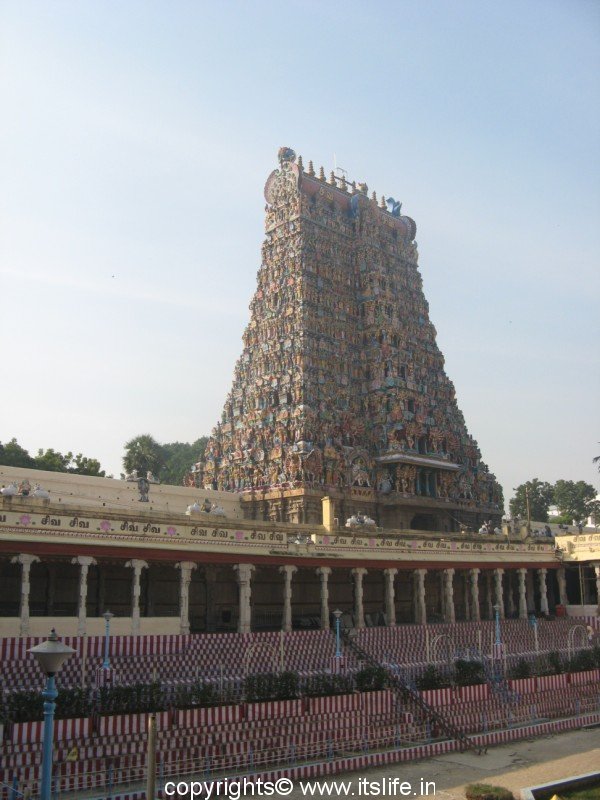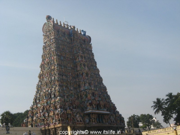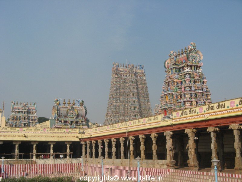The two main shrines of Meenakshi and Sudereshwar has two golden gopurams (towers). The area covered by the shrine of Sundareswarar is exactly one fourth of the area of the temple and that of Meenakshi is one fourth that of Sundareswarar.
