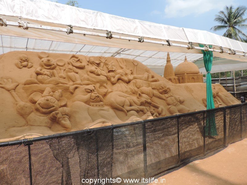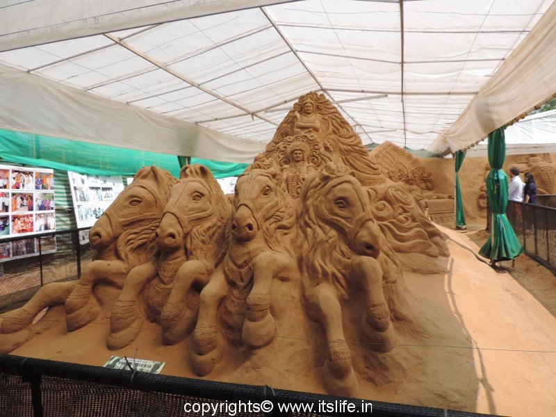 Located on the main road that leads to Chamundi hills, the artist has used 115 truckloads of construction sand and has created 150 sculptures. There are totally 16 themes spread over 13,500 square feet. There is an entry fee charged and it is worth every penny.
