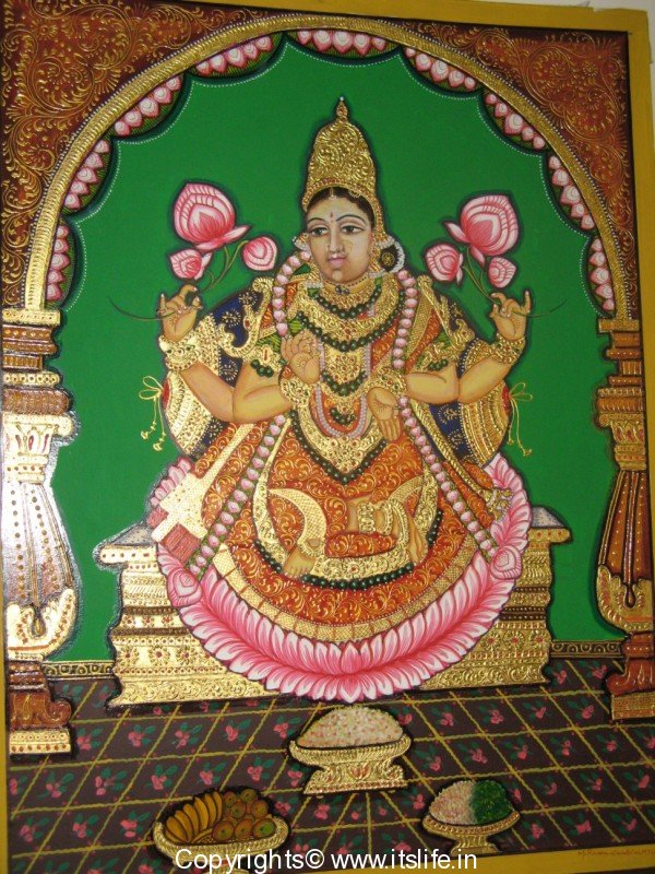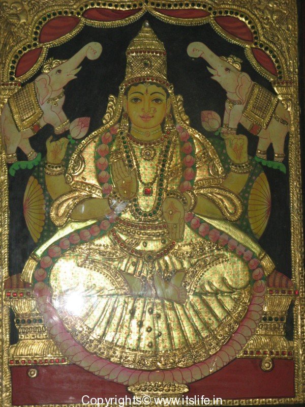 Sri M.Ramanarasaiah patiently heard my desire to get a painting painted by him and after asking questions about where I intended to place the painting, he explained the image that would be most appropriate. I was only too happy to place the order and he painted goddess Lakshmi’s picture to perfection in a month using gold flakes and paints. It is only after the painting entered our house, did I feel a sense of completeness.