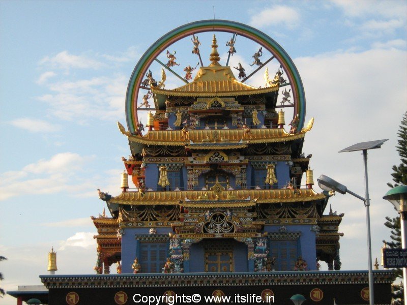 His Holiness Pema Norbu Rinpoche established the Golden Temple in 1963 after he came from Tibet. The original name of this monastery was Thegchog Namdrol Shedrub Dargyeling and His Holiness the Dalai Lama conferred the place with a shorter name Namdroling Monastery. It takes the credit of being the largest teaching center of Nyingmapa – a lineage of Tibetan Buddhism in the world. There are approximately 5000 monks and nuns in the teaching center perpetuating the teaching of Buddha.