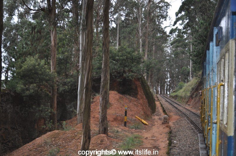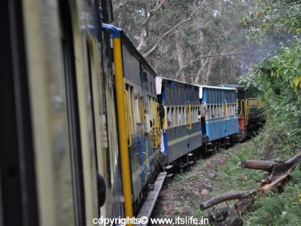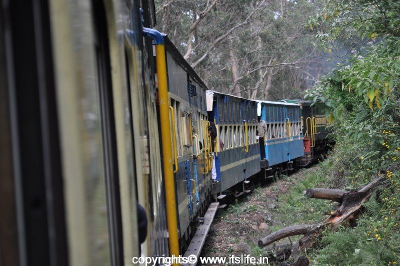 A steam engine pulls up the train from Mettupalayam to Coonoor and from Coonoor a diesel engine pulls the train through the mountain terrain to Ooty.