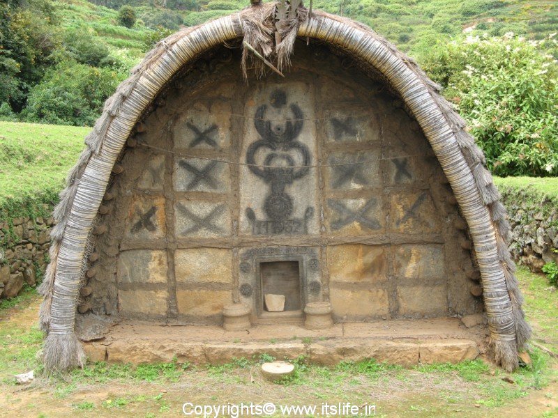 Todas are vegetarians and their occupation is cattle rearing and dairy. They worship buffaloes along with many other gods and goddesses and you can see the horns of the buffalo drawn on the entrance of the Toda temple.