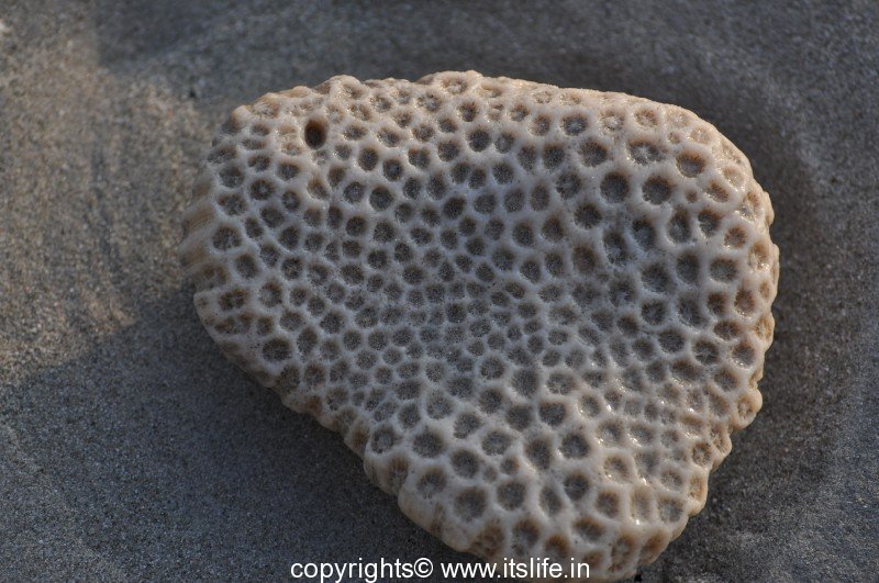 Dead Coral from the deep sea is washed ashore by the gentle waves.