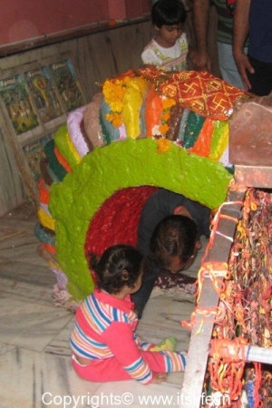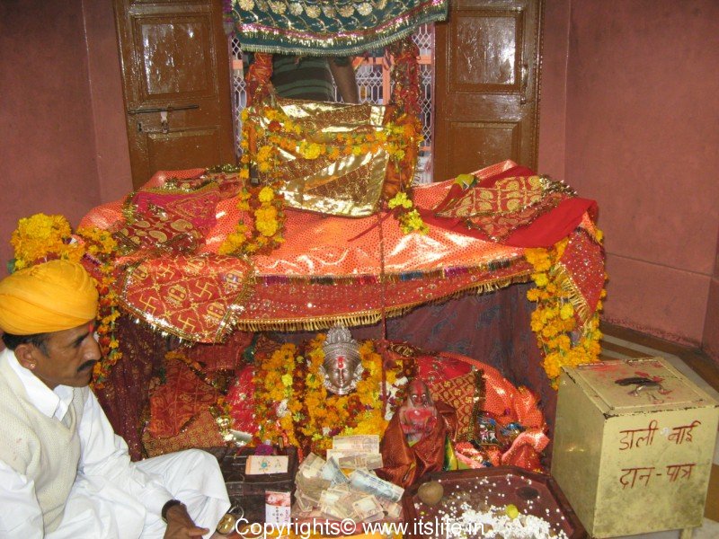 There is a shrine inside the temple dedicated to Daali Bai, a devotee of Baba Ramdev. There is a bangle structure constructed in concrete known as Daali Bai Ki Kangan / Daali Bai’s Bangle. It is believed that if you crawl out of the bangle and tie bangles near the shrine your wishes will be fulfilled.