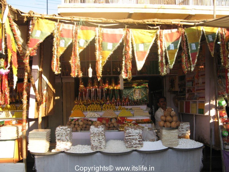 There are many shops lined on either side of the path leading to the Samadhi / Temple selling flowers, coconuts, sugar and decorated toy horses to offer to Ramdevpir. The horse is offered because the baba liked riding horses.