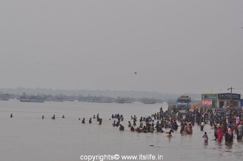 Pilgrims take a holy dip in the Rameshwara Beach, 22 theerthas (holy water tanks), and at Dhanushkodi also known as Sethu Theertha. Dhanushkodi is the place where Bay of Bengal meets Indian Ocean. Rameswaram is a main fishing center of Tamil Nadu. The island attracts many nature lovers who enjoy the coral reefs, sun, sand, sea, and greenery.