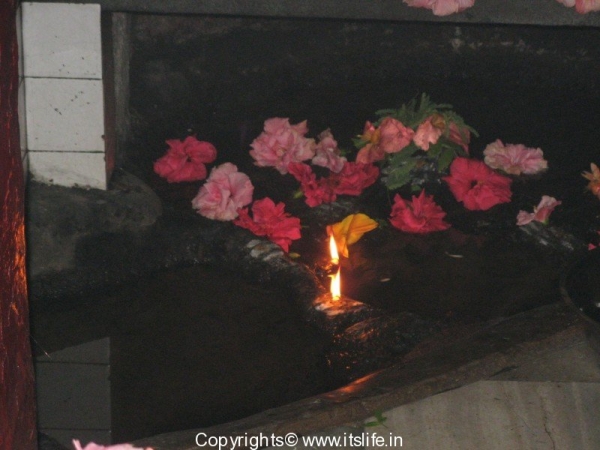 “Seetha” means damp in Kannada. The Linga is always surrounded by water.