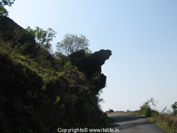 We came across a funny looking rock jutting out from the hill onto the road. We named it the “Big Nose Rock”.
