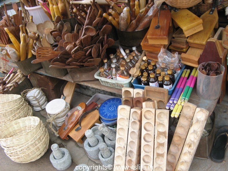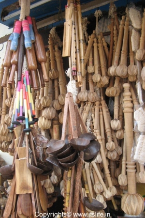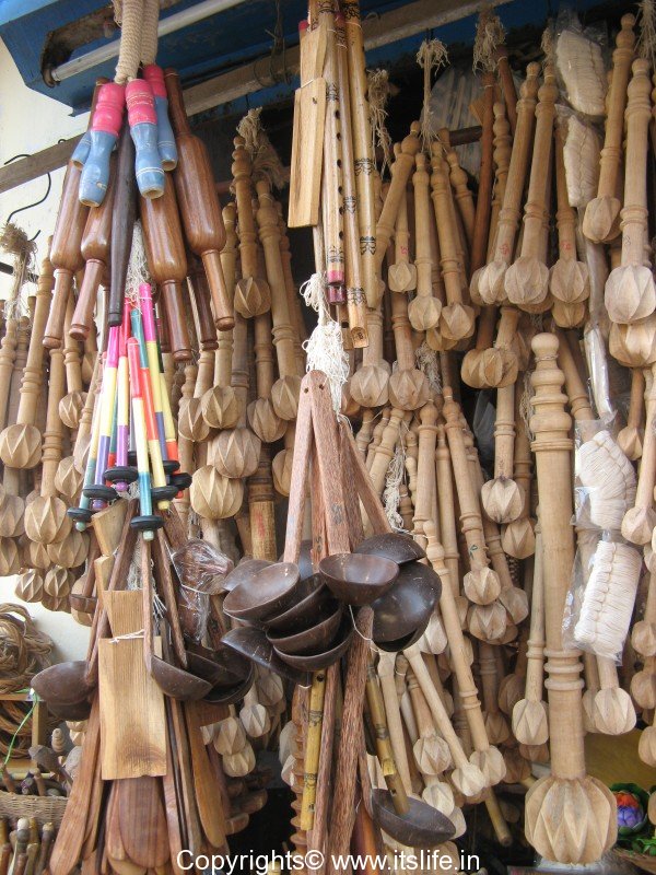 Utensils to prepare Udupi cuisine like Shavige, Guliyappa (phaddu) are available for sale. Leaf kadabu molds and Coconut scrapers are also sold in the shops here.