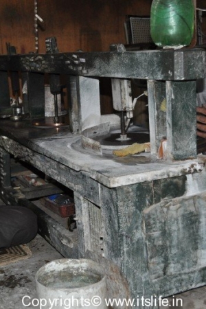 We entered a jewelry making workshop in Jaipur and there were many people cutting the rough semi precious stones like Jade, Garnet, Topaz etc. using machines. We could also see various stones in their natural form.