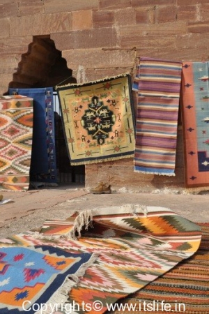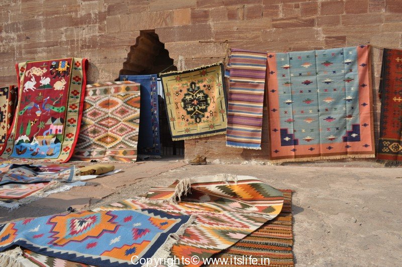 Picture12 – Joothi shop in Jodhpur, Durries on display in Udaipur palace
