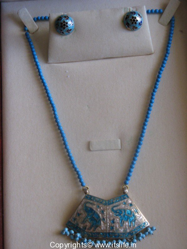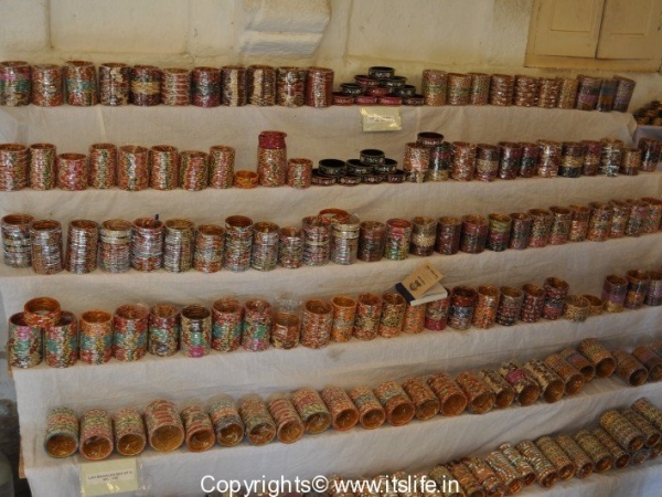 Women in Rajasthan wear a lot of Jewelry. Jewelry types available are Jadao, Kundan, Thewa, Meenakari, Lac, Silver Jewelry set with semi precious stones, and so on. At Mehrangarh fort, Jodhpur, the royal jewelry is cloned in silver and sold at a counter.