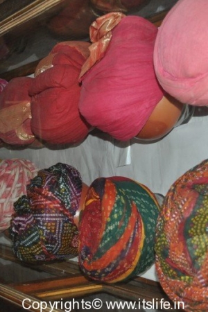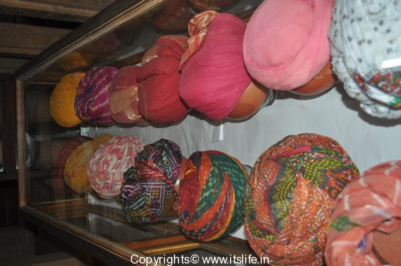 Picture9 – Jaisalmer Fort (left) and Turbans on display in a palace