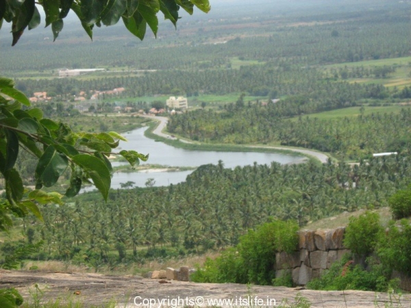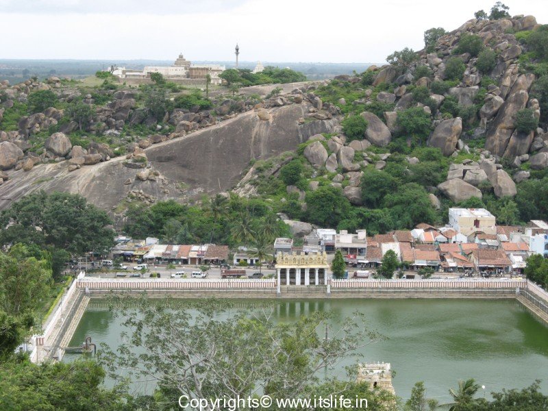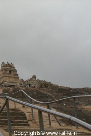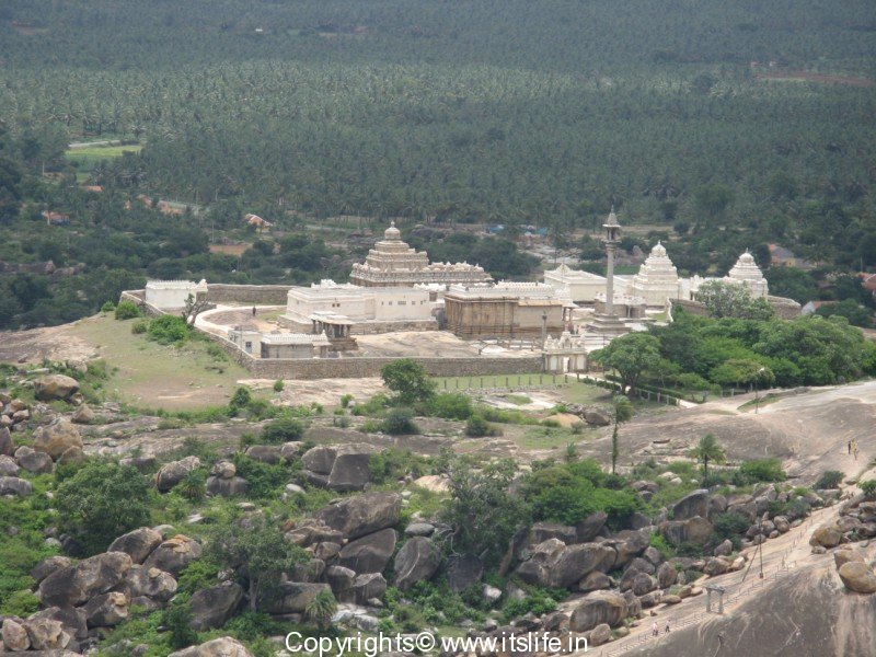 There are two hills here known as Chandragiri (Chikkabetta) and Vindyagiri.