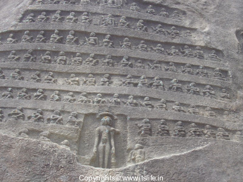 Vindhyagiri hill is a big rock, which is 470 feet high with 500 steps cut in the rock.
