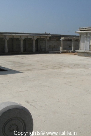 The temple was built in the 12th century in Kannambadi village and the architecture is a mixture of Dravidian and Chalukyan style. A huge open air courtyard forms the outer fort and this leads into another smaller open air courtyard and in the middle is the temple with a stunning Gopura. The Garbha Gruha / Sanctum Sanctorum is ready for the installation of the idol. An oil lamp lit in the Garbha Gruha seems to be waiting to throw light on the new idol.
