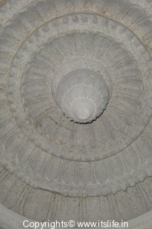 The ceiling of the temple is intricately carved.