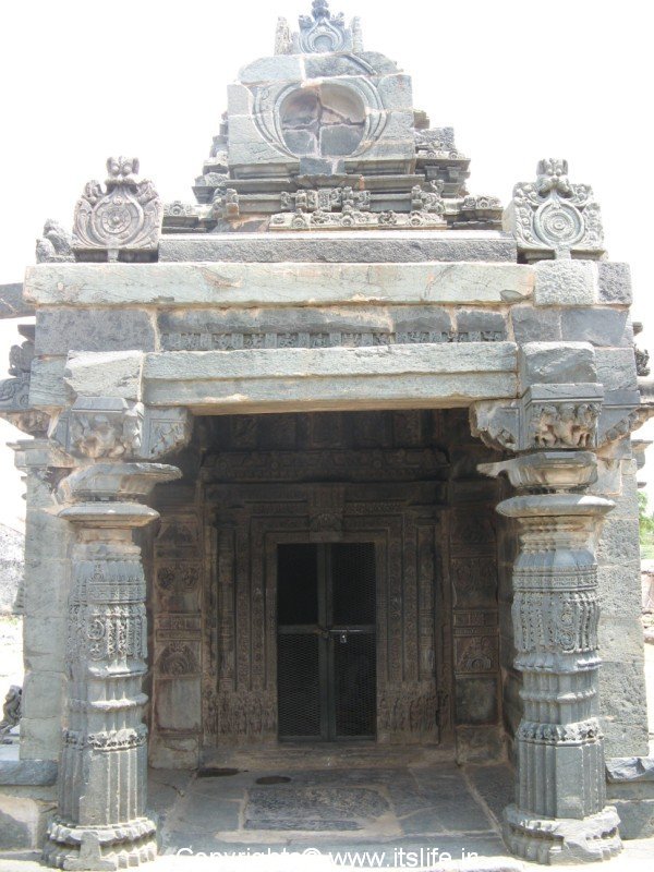 Gajalakshmi adorns in the middle of the door lintel and is an example of intricate sculpture flanked by elephants.