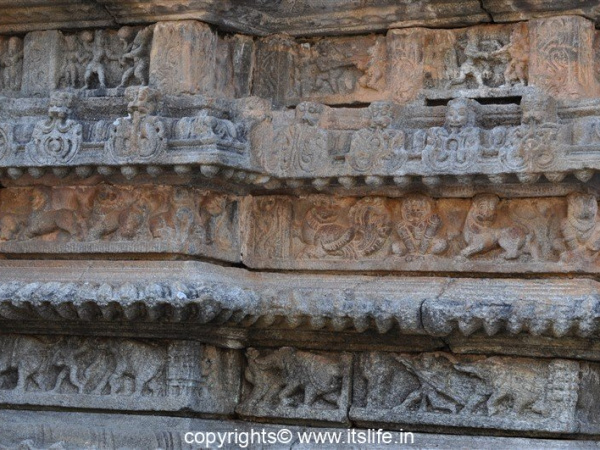 The basement is sculpted with puranic stories, animals, gods, goddesses, dashavatara and so on.