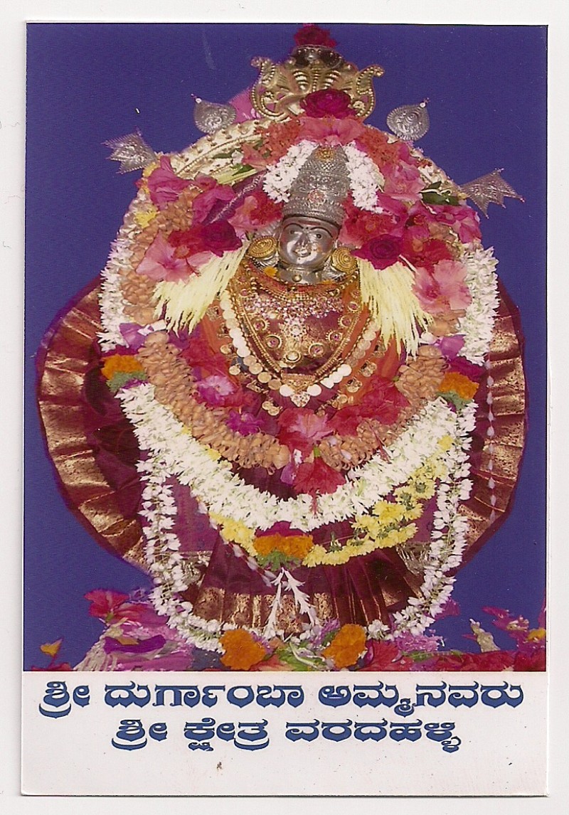 Shridhara swamiji had a dream in which Durgamba appeared and asked him to go to Varadahalli and perform Jeernodharana / revival of her idol. Hence Shree Shridar Swamiji came to Varadahalli and spent many years doing meditation, discourses and penance for the benefit for human kind in his ashrama.